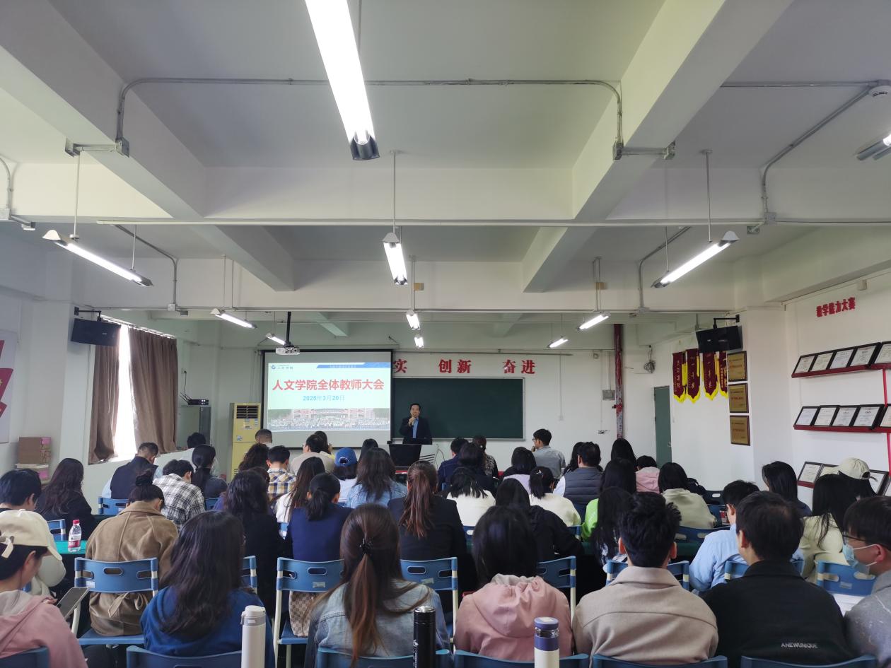 3月20日下午,公司在人文艺术楼513会议室召开全体教师大会,党委书记、经理鲁岩作主题报告和工作部署,院领导王婧、朱丽芳、龙轩、李科锋以及全体教师参加了本次大会。