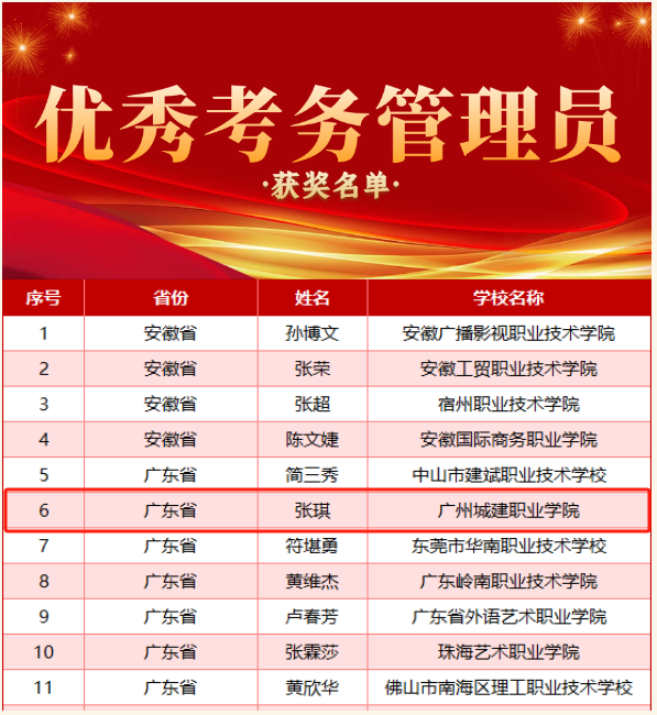 张琪被授予“优秀考务管理员”称号