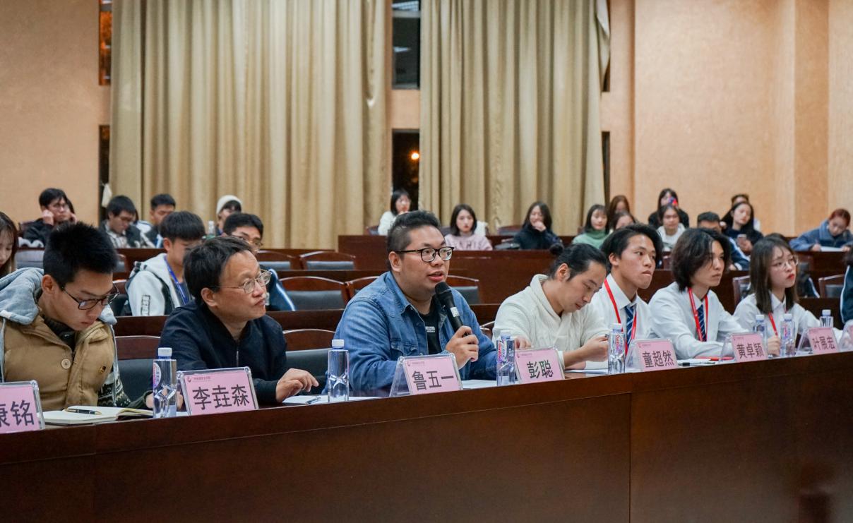 决赛在雄浑的团歌声中拉开序幕,彭聪老师首先致辞。他指出,“人生如戏,但人生没有彩排,每一天都是现场直播。科技是国家强盛之基,创新是民族进步之魂。希望通过本次微电影大赛,与各位同学共同分享当代青年的拼搏,永不言败的优秀挑战品质”。他还指出通过本届比赛,青年学子可以进一步提升审美素养,也更以一种美的方式看待生活,用普通生活演绎人生。