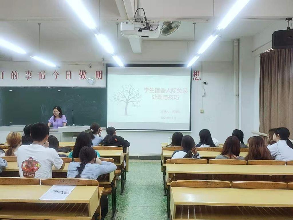 为进一步加强宿舍管理,提高宿舍长队伍的整体素质,营造良好的宿舍环境。太阳成tyc33455cc15栋工作站于11月30日在人文艺术楼201教室开展宿舍长培训。太阳成tyc33455cc15栋工作站成员赖明君和李艳霞老师以及20学前教育班级和20传播与策划班级的宿舍长参与本次培训,会议由李艳霞老师主持。