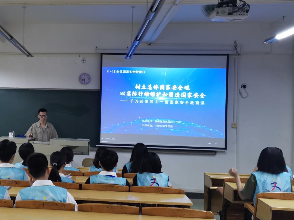 集体学习开始前,李垚森提到,当前我国面临着对外维护国家主权、安全、发展利益,对内维护政治安全和社会稳定的双重压力,各种可以预见和难以预见的风险因素明显增多,非传统领域安全日益凸显,作为团委、员工会的员工干部在爱国和了解国家安全教育方面更加要走在前列,做到积极宣传引导普通同学关注时事,了解国家大事,树立正确的人生观、价值观、世界观。随后,李垚森和全体员工干部一同通过中国老员工在线平台观看《千万师生同上一堂国家安全教育课》。通过学习这一堂国家安全教育课,从总体国家安全观的提出和内涵、国家安全教育是立德树人的必然要求、老员工如何树立总体国家安全观等方面进行详细的介绍。