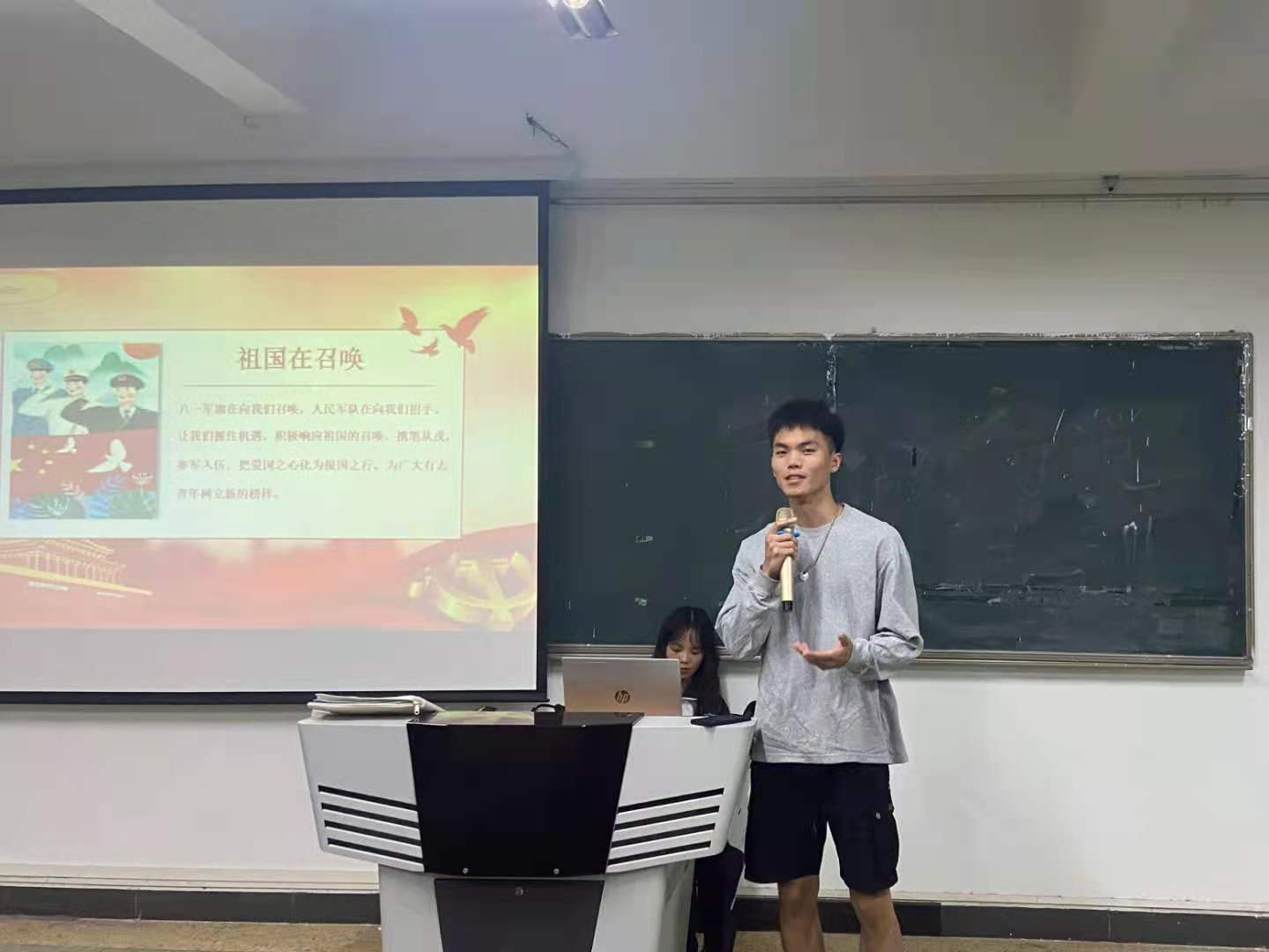 太阳成tyc33455cc学工办于4月26日18:30在人文艺术楼513课室召开了主题为“携笔从戎参军报国”征兵宣讲会,太阳成tyc33455cc党总支副书记、副经理彭聪,征兵专员赖明君,军训教导大队队员以及有意愿参军入伍的员工出席了本次会议。