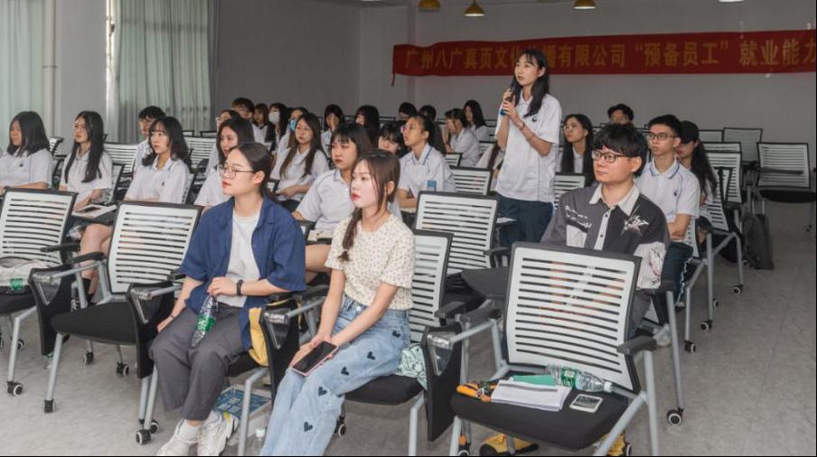 本次就业能力培训通过发放企业测量问卷、组织意向员工测量、形成企业用人需求匹配报告,与用人单位共同制定培训方案等一系列严格的精准招聘与适岗培训的框架进行,采取“将企业课堂搬进校园”的方式,培训主题涵盖“素质拓展、成长故事、专题培训、案例分析、情景模拟”等。5月15日上午9:00,培训班举行隆重开营仪式,彭聪副经理致辞。他说到,预备员工职业(就业)能力培训契合了职业教育服务社会、促进区域经济发展的要求,培养员工良好的专业技能、较高的职业素养、提升其服务意识,促进职业教育的发展,希望同学们珍惜本次培训机会,以职场人的身份全身心地参与。培训过程中,八广公司以“团队破冰、团队融合、团队共赢”为主题的游戏活动破冰,将全体学员分成若干小组,通过活动打破员工的生疏,迅速融入培训活动中。在该公司工作的往届毕业生以自身经历对个人素养、学习成长进行剖析,并为即将步入社会参加工作的学弟学妹们加油打气。本次活动为给员工以真实的工作情境体验,还设置了情景模拟训练项目,员工们通过演绎品牌方和客户这两种角色进行交涉,更加深刻地体验了职场工作的困难与不易。经过两天一夜的培训,最终各小组均通过各项考核,顺利结业。