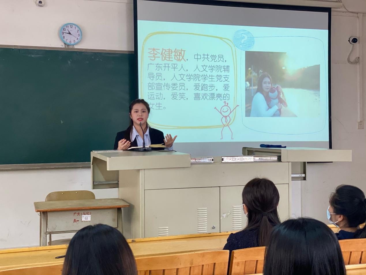 指导老师李健敏上台讲话