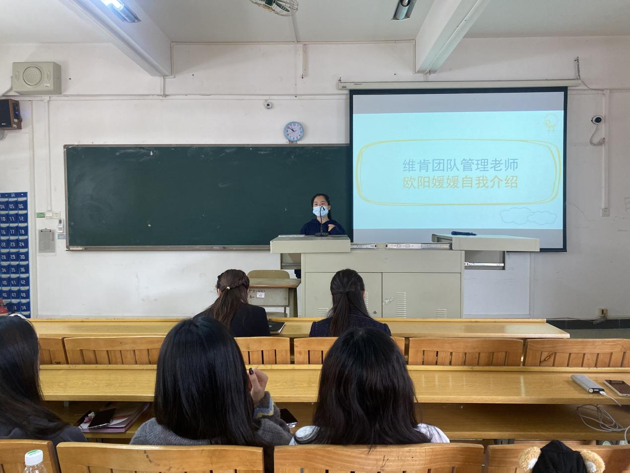 维肯团队管理老师欧阳媛媛上台讲话
