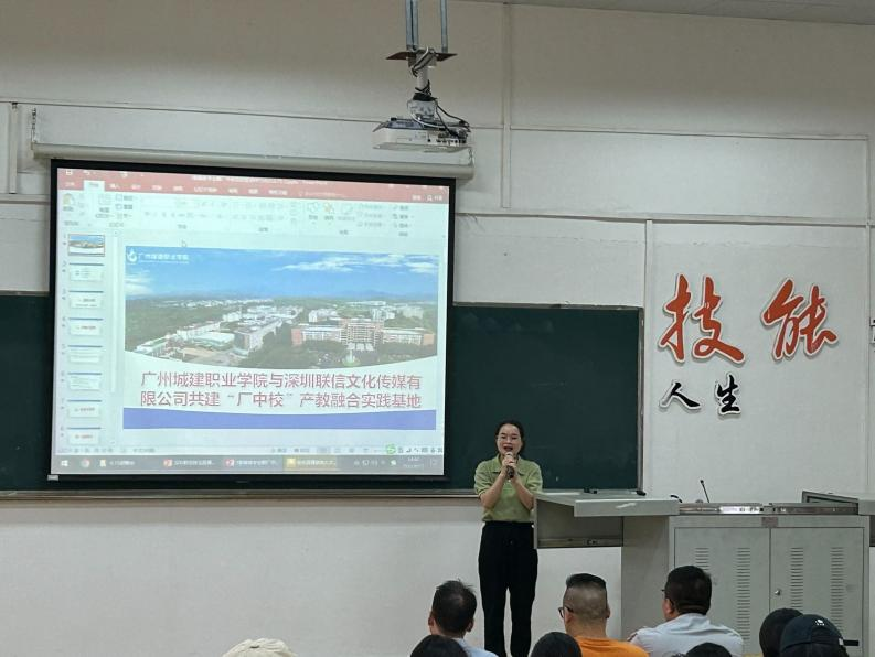 朱丽芳向同学们解读了公司“厂中校”相关文件精神,她指出,开展“厂中校”项目是深化产教融合的重要措施,是提升人才培养质量的有力保障。本次参加“厂中校”项目企业都具有一定的行业实力,能够为新媒体专业群员工提供匹配的岗位,是公司、公司多次深入企业走访洽谈,全面考察企业资质、安全管理、经营范围等企业基本情况后才最终确定的“厂中校”项目合作企业。同时,她还指出,集团和公司将全力支持新媒体专业群的“厂中校”项目,为参与项目的企业和员工提供最大力度的帮助和服务,确保新媒体专业群“厂中校”项目的顺利实施。
